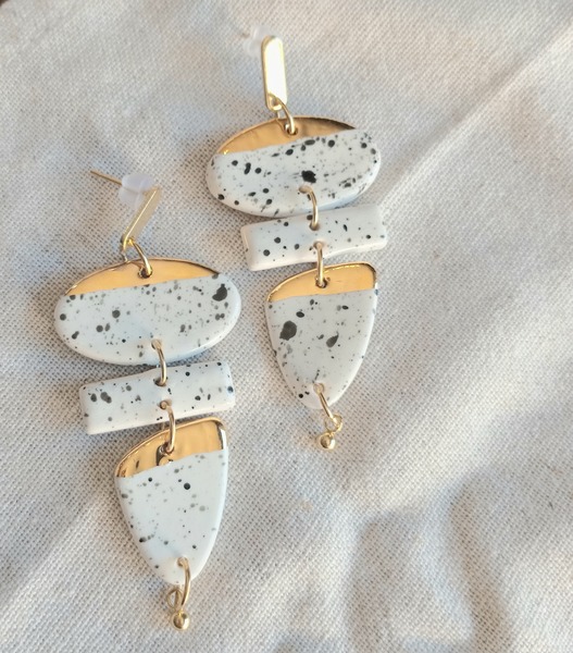 Handmade and hand painted Nguni inspired ceramic jewelry including studs, dangle earrings and pendants on a 45cm chain, with touches of gold lustre. All findings used is 100% gold-plated stainless-steel. Please allow 2 weeks for manufacture and delivery.